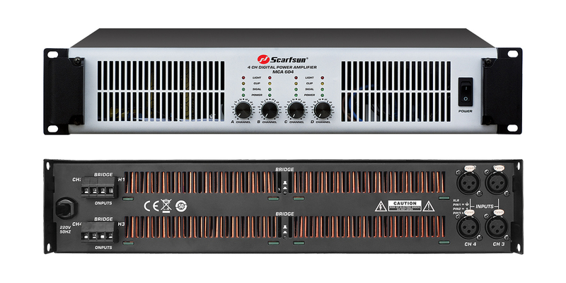 MCA-504/604/804系列 是我公司独立开发的新一代功率放大器。它结合了D类功放的高效输出与AB类功放柔美干净音质的特点,使其不仅具有超值的稳定性,更有美妙的高保真音质输出,实为大中型户外演出、剧场、音乐厅等专业场合之首选;亦受到音响发烧友的追捧!    我们把当下功放领域推崇的稳压电路设计,VPL功率管理,VHF超高频保护等先进技术都集成在了该产品上,不断优化改良产品工艺,在提升稳定性的同时还兼顾了超值的性价比,增加了产品广泛的适应性。